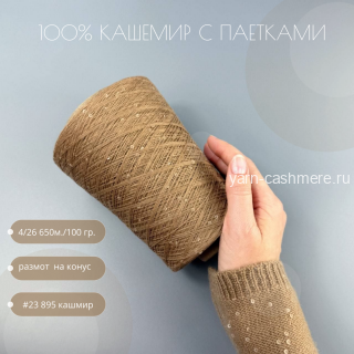 Бобинный 100% кашемир с паетками Сандал 4/26 650м./100 гр